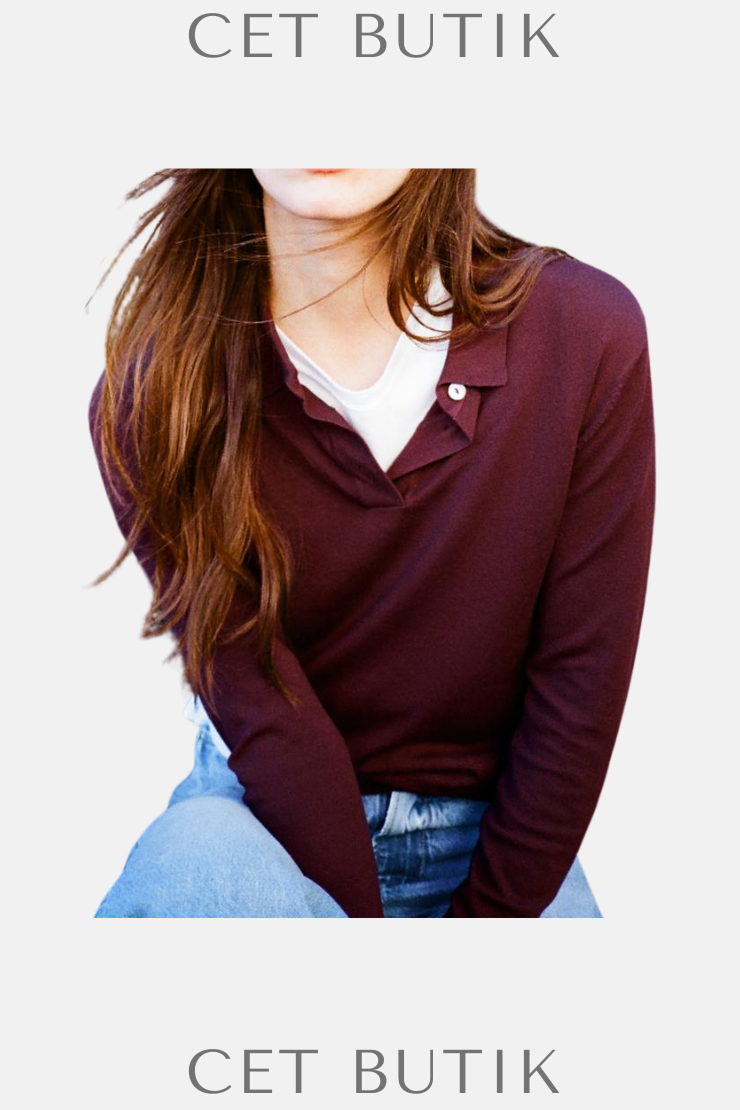 Zara Kadın Düz Triko Polo Üst – Bordo