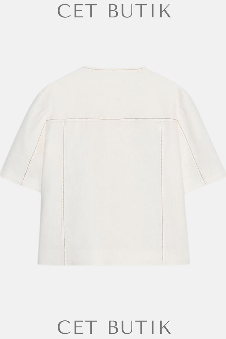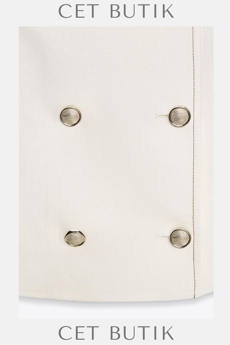 Zara Kadın Kısa Kollu Keten Karışımlı Blazer – Ekru | Şık Yaz Stili