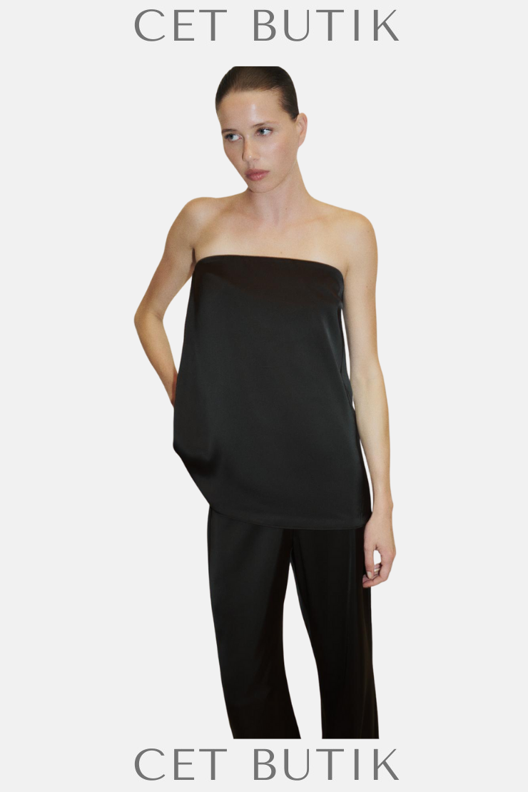 Zara Kadın Straplez Saten Görünümlü Bluz – Siyah