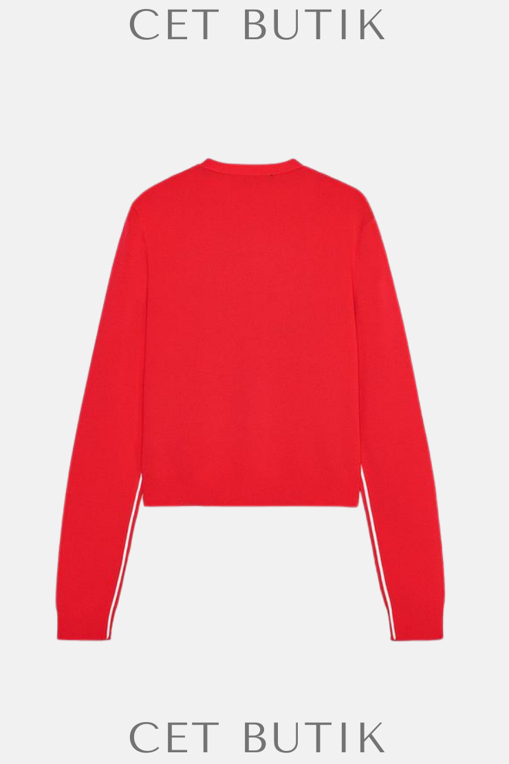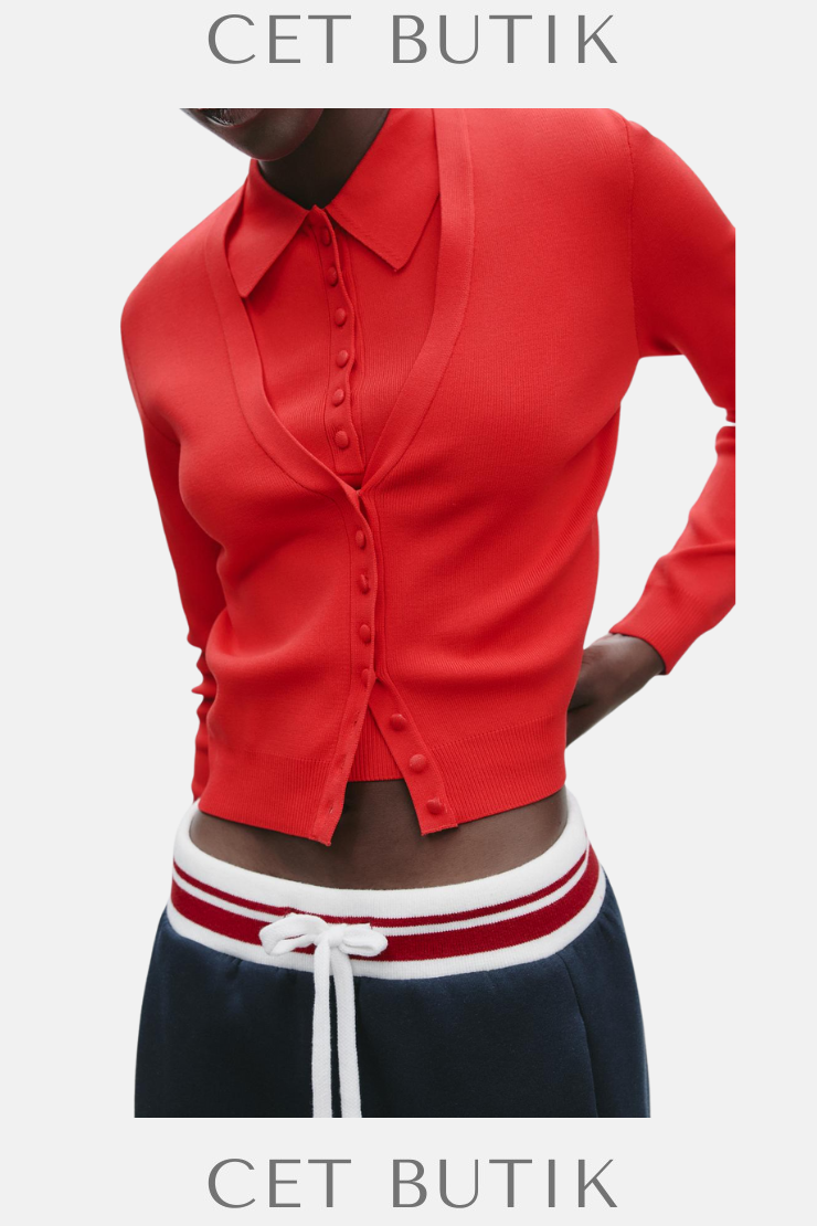 Zara Kadın Yan Detaylı Kontrast Trims Kırmızı Triko Hırka