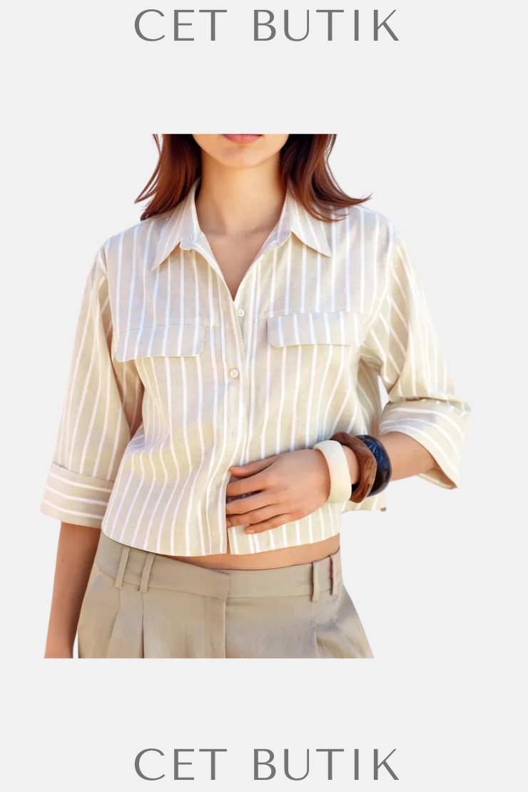 Zara’nın 2224/913/710 kodlu kısa çizgili gömleği, bej tonları üzerine metalik iplik detaylarıyla şıklık sunuyor. Önden düğmeli ve cep detaylı tasarımıyla hem günlük hem de ofis kombinlerine uyum sağlar. Rahat kesimi ve modern çizgileri sayesinde yaz ve bahar aylarının vazgeçilmez parçası olacak. Denim pantolonlar ya da eteklerle kombinleyerek şık bir görünüm elde edebilirsiniz.