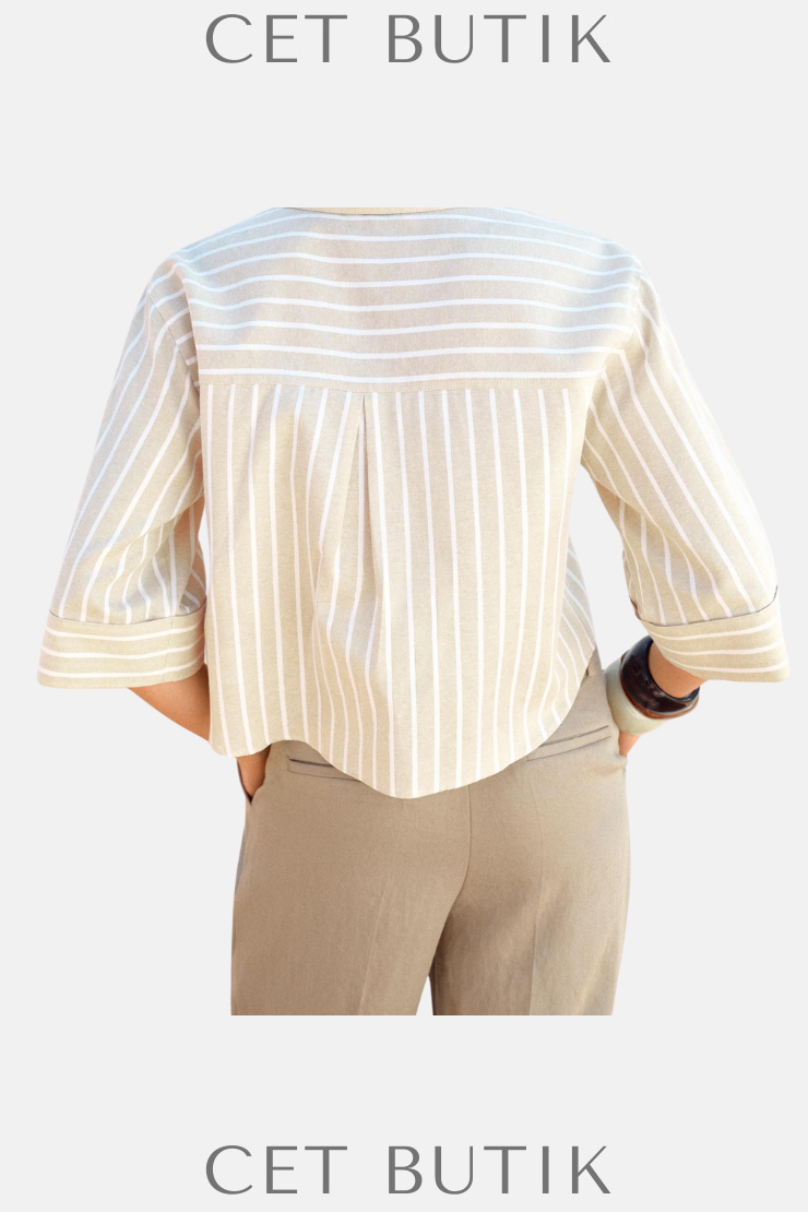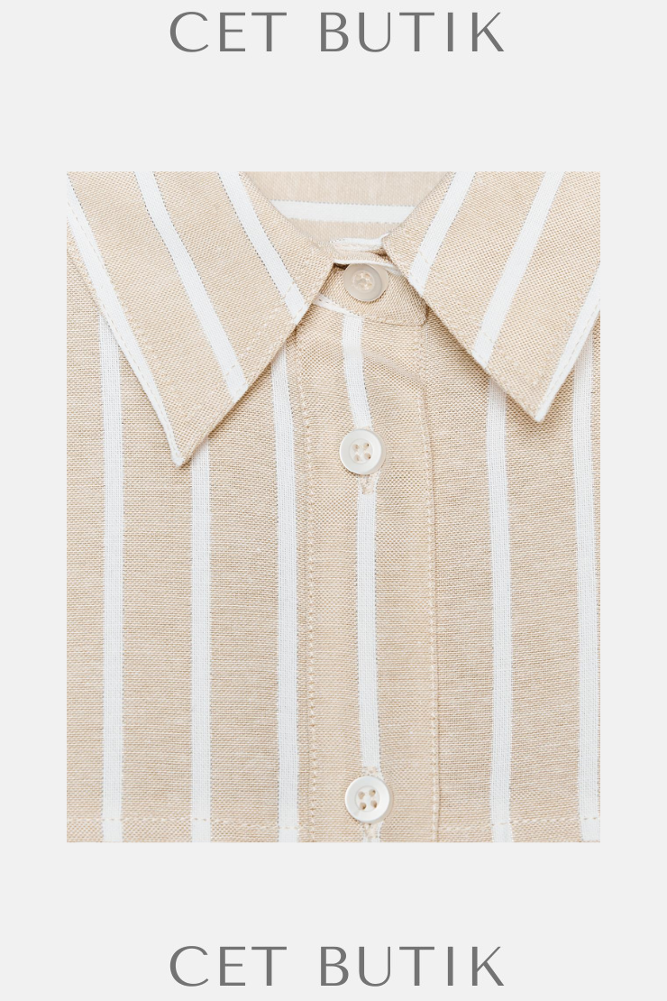 Zara Kısa Çizgili Metalik İplik Detaylı Gömlek – Bej