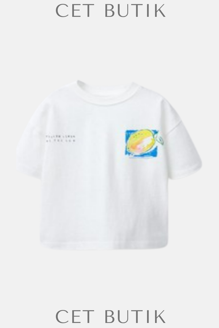 Zara Limon Baskılı Pamuk Tişört – Beyaz